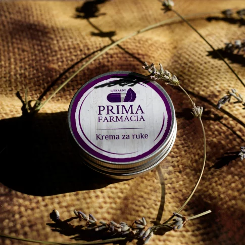 Krema za ruke Prima Farmacia s njegujućim prirodnim sastojcima njeguje kožu ruku, sprječava isušivanje i obnavlja ispucalu i grubu kožu. Prekrasan miris lavande. Brzo se upija i ne ostavlja masne tragove.