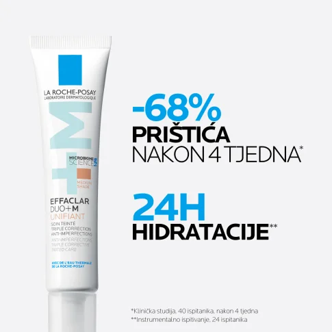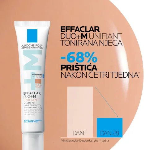 La Roche Posay Effaclar Duo Unifiant vidljivo smanjuje pojavljivanje nepravilnosti već nakon 12 sati te uklanja tragove. Ovi brzi rezultati potvrđeni su pod nadzorom dermatologa: koža je značajno manje crvena, ujednačenije boje i glađe teksture