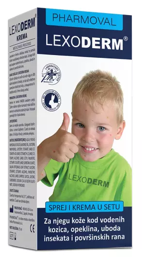 Lexoderm krema i sprej za njegu kože kod vodenih kozica.
