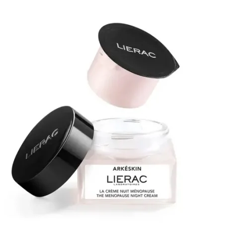 Lierac Arkeskin noćna krema protiv hormonalnog starenja formulirana s 96% sastojaka prirodnog porijekla ispravlja vidljive znakove menopauze na koži: suhoću, gubitak gustoće i čvrstoće. Inspirirana je biološkim ritmovima kože.