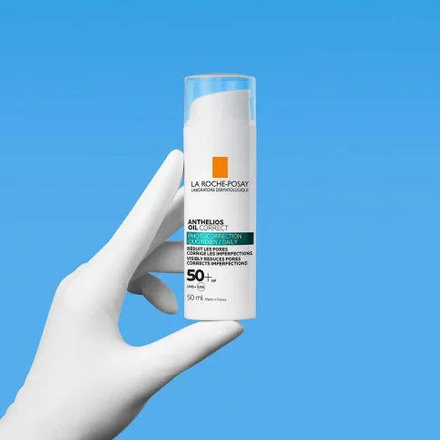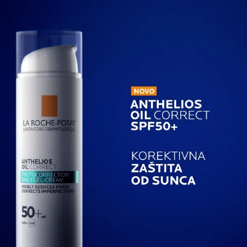 La Roche-Posay Anthelios Oil Correct SPF50+ svakodnevni je korektivni proizvod za zaštitu od sunca za masnu kožu. Vrlo visoka zaštita za lice. Ne ostavlja bijele tragove. Bez parfema. Bez parabena.
