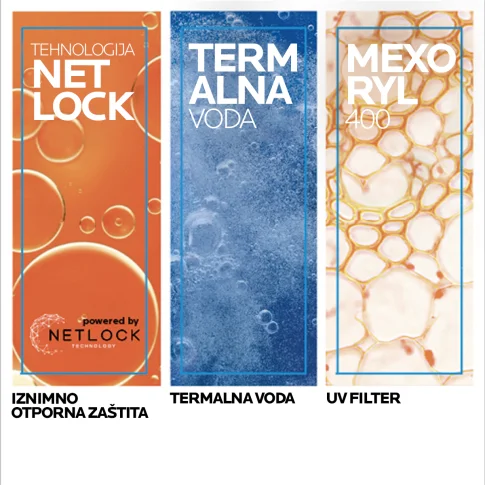 XL-PROTECT patentirana je tehnologija filtera, koja pruža vrlo visoku zaštitu od širokog spektra UVB/UVA zračenja te štiti od nastanka oštećenja uzrokovanih onečišćenjem i infracrvenim zračenjem. MEXORYL400 novi je ekskluzivni UV filter koji štiti čak i od najpodmuklijih UV zraka. TEHNOLOGIJA NETLOCK omogućuje ultimativnu zaštitu, veliku otpornost i nevidljivu teksturu.