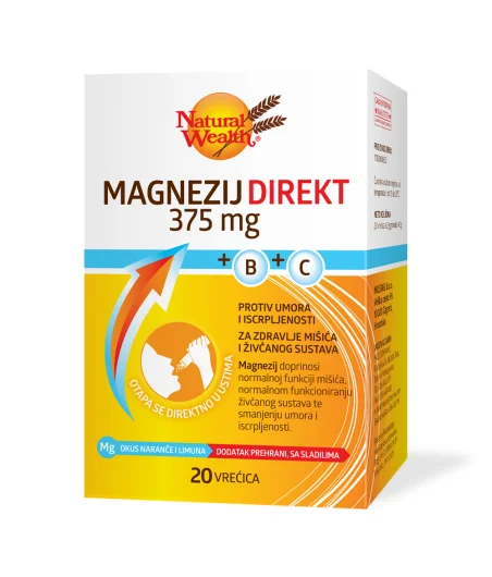 Natural Wealth Magnezij Direkt 375 mg vrećice su dodatak prehrani s magnezijem i vitaminima C i B skupine.