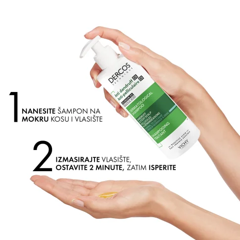 POSTUPAK KORIŠTENJA: Nanijeti malo šampona na vlažnu kosu i vlasište. Ostaviti da djeluje 2 minute, izmasirati, a zatim isprati.