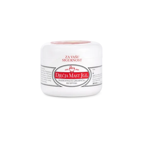 Dječja mast JGL pripravljena je prema tradicionalnoj ljekarničkoj recepturi. Štiti od nastajanja neugodna crvenila i iritacije u području pelena. Namijenjena je za svakodnevnu njegu nježne kože novorođenčadi i djece.