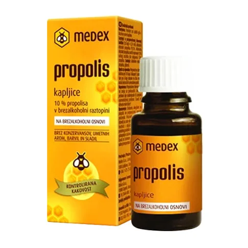 Medex Propolis 10% kapi u bezalkoholnoj otopini, prikladne su za vanjsku upotrebu, a pridonose njezi i zaštiti usta i usne sluznice te imaju ulogu u obnavljanju i zaštiti kože djece i odraslih. Primjenjuju se u usnoj šupljini za zacjeljivanje rana i čireva.