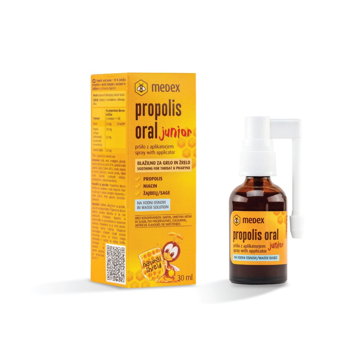 Medex Propolis Junior sprej, na bazi vode bez alkohola, prirodna je pomoć kod nadražaja grla za djecu stariju od 3 godina.