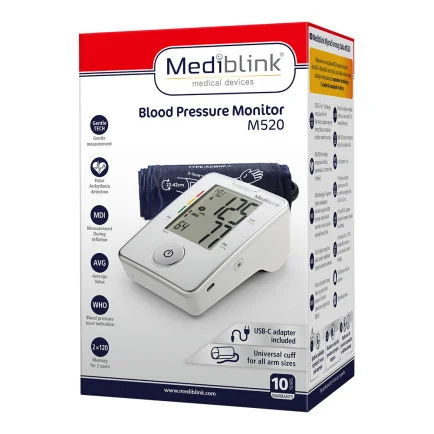 MEDIBLINK tlakomjer za nadlakticu M520 sadrži 3 napredne tehnologije i dodatnih 7 značajki koje omogućuju bolju kontrolu vašeg zdravlja.
