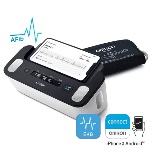 OMRON Complete omogućuje brzo otkrivanje nepravilnog srčanog ritma, kao što su atrijska fibrilacija, tahikardija i bradikardija. Ovaj tlakomjer trenutačno prikazuje rezultate mjerenja krvnog tlaka i EKG-a te interpretira rezultate EKG-a kako bi korisnici mogli s lakoćom otkriti nepravilne otkucaje srca i provjeriti je li prisutna atrijska fibrilacija.