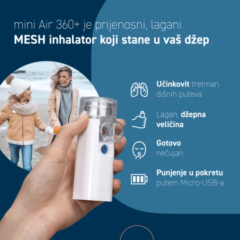 Mini Air 360+, distribuiran od strane OMRON-a, lagani je mesh inhalator koji stane u vaš džep. Olakšajte kašalj i prehladu u pokretu.
