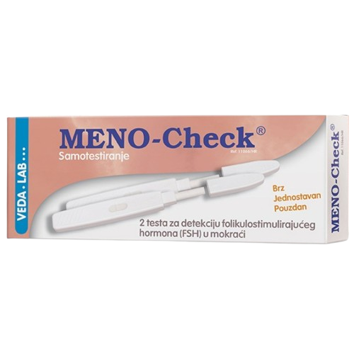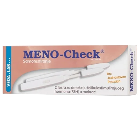 MENO-Check je jednostavan i pouzdan kućni test koji detektira razinu folikulostimulirajućeg hormona (FSH) u mokraći, pomažući ženama prepoznati ulazak u menopauzu ili perimenopauzu.