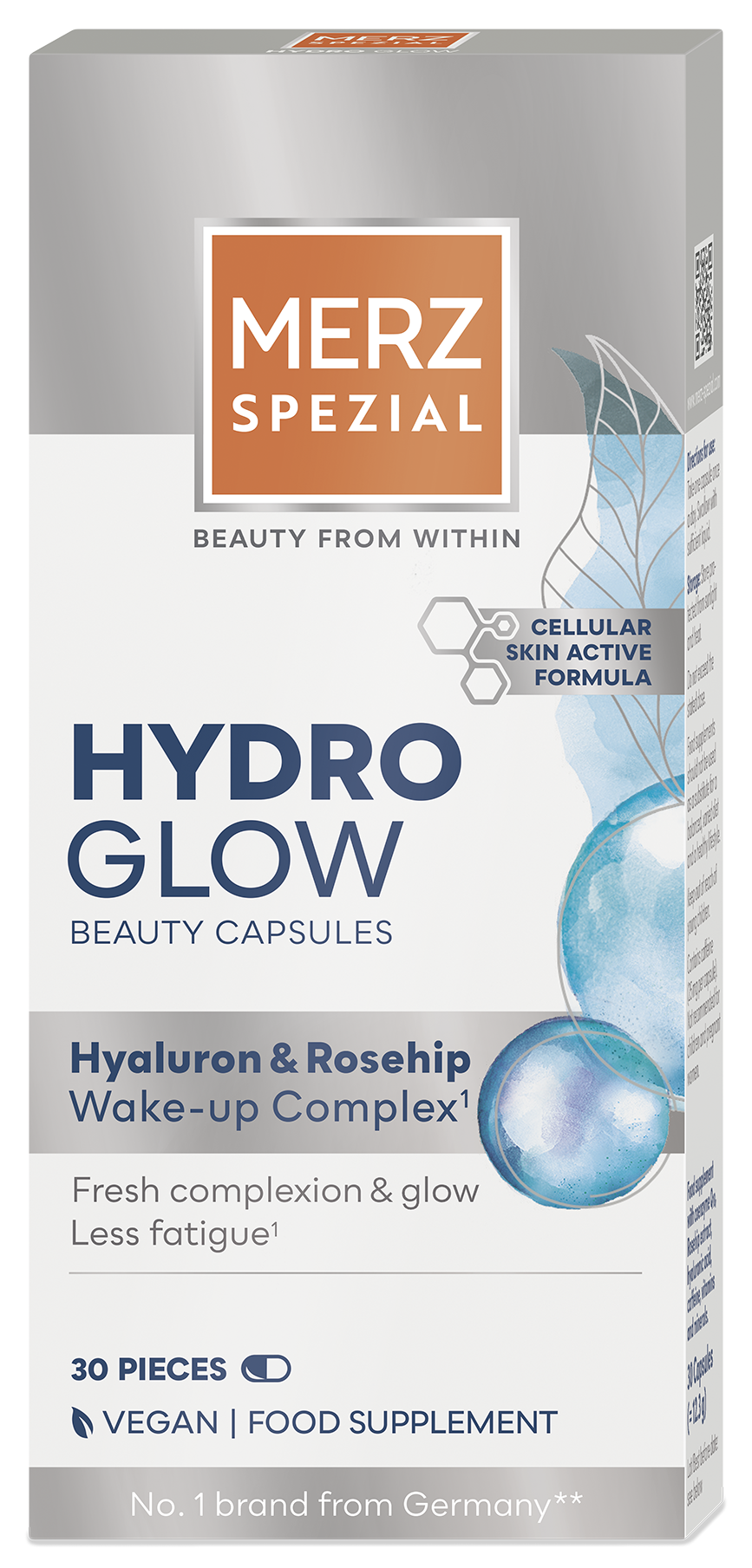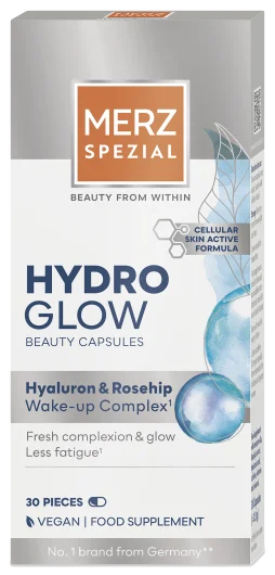Merz Spezial Hydro Glow Beauty kapsule aktivna su formula za stanice kože. Dodatak prehrani s koenzimom Q10, ekstraktom šipka, hijaluronskom kiselinom, kofeinom, vitaminima i mineralima.