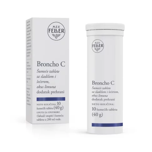 M.E.V. Feller Broncho C šumeće tablete pomoć su kod produktivnog kašlja i nakupljanja sluzi u dišnom sustavu.
