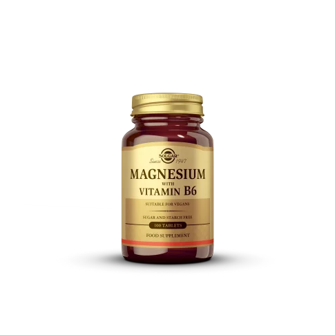Solgar Magnezij s vitaminom B6 tablete sadrže kombinaciju magnezija i vitamina B6 koji imaju ulogu u smanjenju umora i iscrpljenosti te normalnom funkcioniranju živčanog sustava.