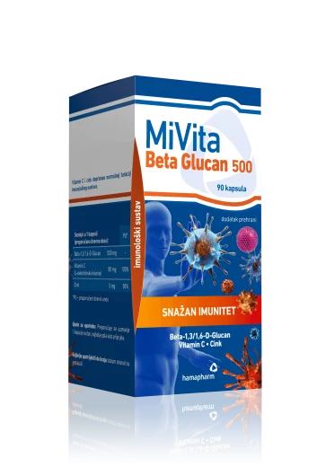 Hamapharm Mivita Beta Glukan kapsule sadrže biološki najaktivniji beta glukan u dozi od 500 mg (beta–1,3/1,6-D-glukana), izoliran iz stanične stijenke kvasca Saccharomyces cerevisiae, uz dodatak vitamina C i cinka.