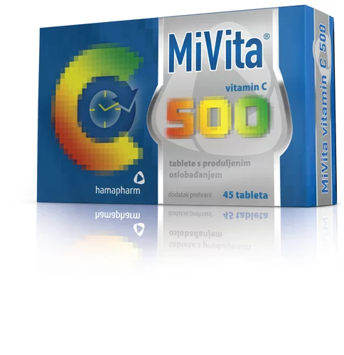 MiVita Vitamin C 500 je dodatak prehrani s vitaminom C koji doprinosi zdravlju kože, kostiju, održava elastičnost krvnih žila i jača imunološki sustav. tablete s vremenskim otpuštanjem.