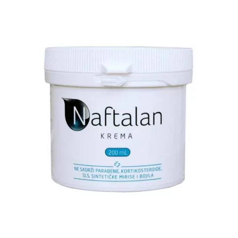 Naftalan krema je jedinstvena krema bogata mineralima naftalanskog ulja. Pomaže vrlo suhoj koži i koži sklonoj ljuskanju na način da je hrani, obnavlja i potiče njen oporavak. Naftalan krema je naročito pogodna za osjetljivu i crvenu kožu.