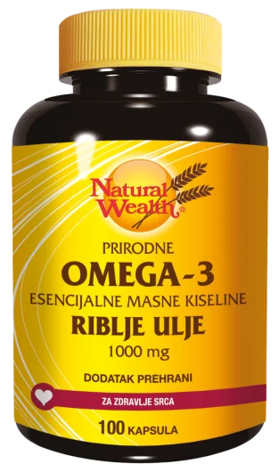 Jedna kapsula sadrži 1000 mg koncentriranog ribljeg ulja sa sadržajem omega-3 esencijalnih masnih kiselina (EPA i DHA) 300 mg. EPA i DHA doprinose normalnoj funkciji srca. Blagotvorni učinak postiže se dnevnim unosom od 250 mg EPA i DHA. Natural Wealth Omega-3 1000 mg kapsule sadrže visokokvalitetno riblje ulje bogato omega-3 masnim kiselinama, koje su idealna nadopuna za očuvanje zdravlja srca i krvnih žila. Omega-3 1000 mg preporučuju se kod povišenih masnoća u krvi, u prevenciji ateroskleroze te za zaštitu zdravlja srca i krvnih žila.
