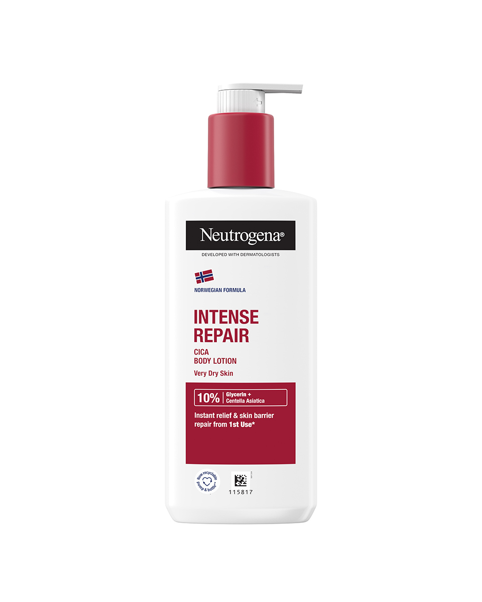 Neutrogena Norwegian Formula lntense Repair CICA losion za tijelo nemasna je njega za kožu koja klinički dokazano djeluje kao hidracijski kožni „povez” 4-u-1. Omogućava: