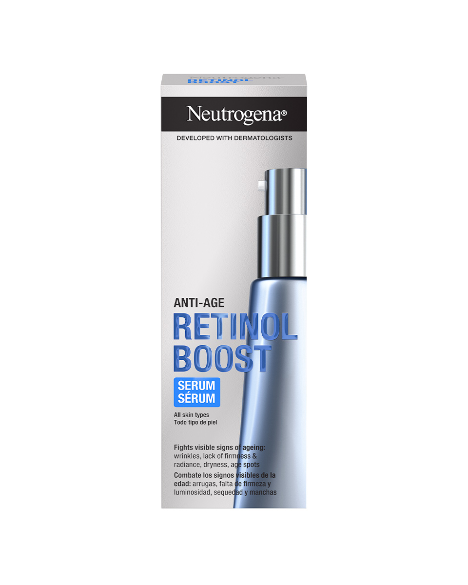 Neutrogena Retinol Boost serum za lice i vrat lagani je serum svilenkaste strukture, koji se uspješno bori protiv raznih znakova starenja te kožu čini vidljivo mlađom i zdravijom. Toliko djelotvoran da je 100% ispitanika postiglo vidljive rezultate već nakon tjedan dana.