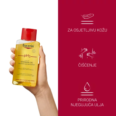 Eucerin pH5 ulje za tuširanje posebno je razvijeno s izuzetno blagim surfaktantima pogodnim za čestu upotrebu na suhoj i osjetljivoj koži. Jedinstveni Eucerin pH sustav ravnoteže formuli pruža optimalnu pH vrijednost za zaštitu prirodnih obrambenih mehanizama kože i očuvanje njezine otpornosti.