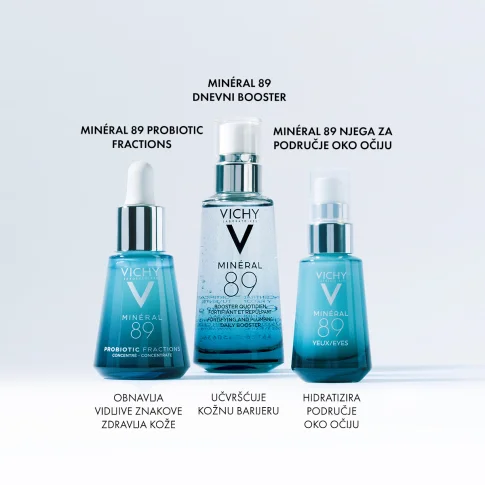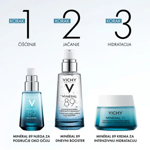 S 89% Vichy vulkanske vode formulirane s hijaluronskom kiselinom prirodnog podrijetla i čistim kofeinom. Minéral 89 Eyes je dnevna doza za snažniju kožu i svježiji pogled.