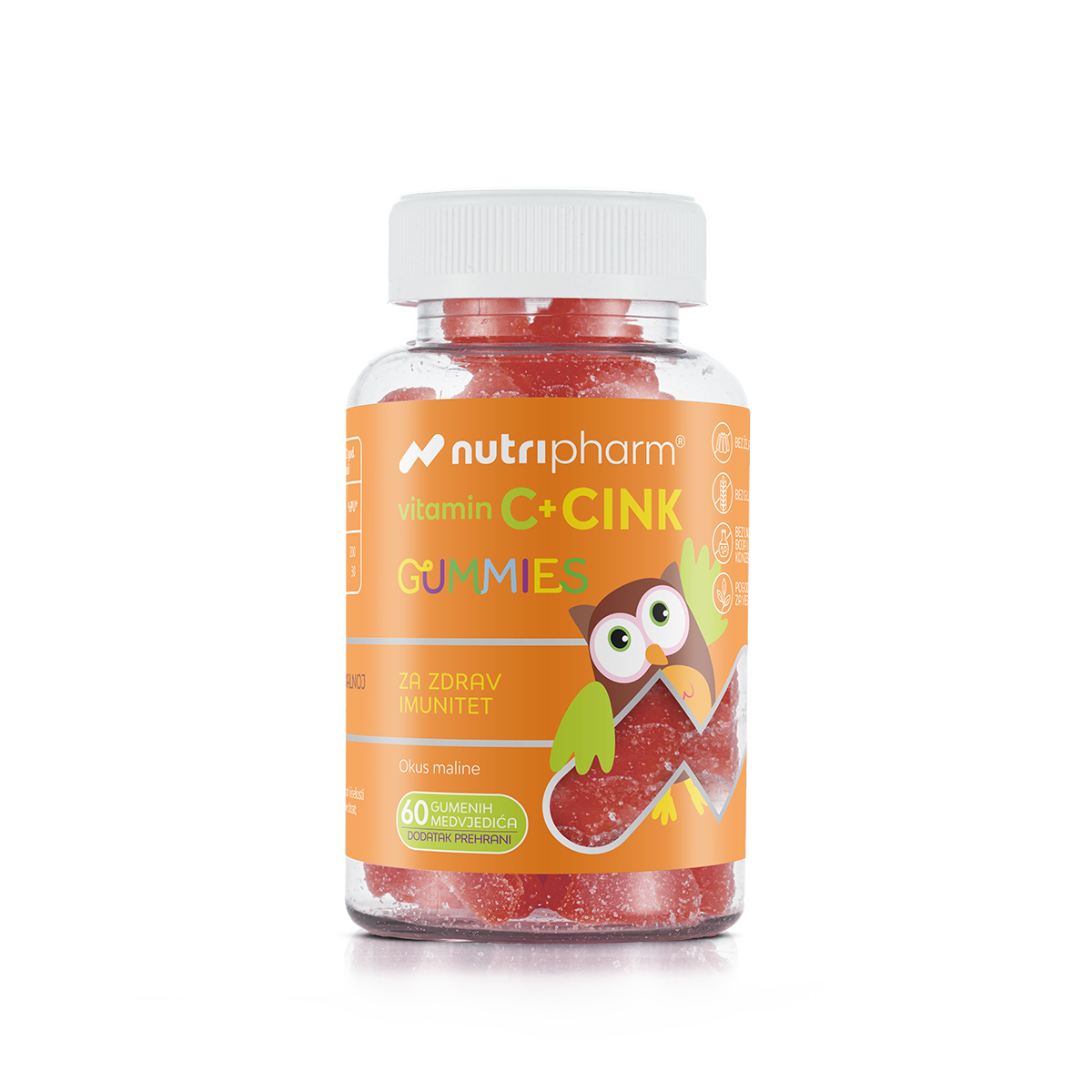 Nutripharm Vitamin C i cink Gummies gumeni bomboni sadrže vitamin C i cink u preporučenoj dnevnoj dozi za svakodnevnu nadopunu prehrane djece i odraslih. Ovaj vitamin uzima se u obliku neodoljivih gumenih medvjedića odličnog voćnog okusa.