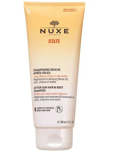 Nuxe After SUN šampon za kosu i tijelo uklanja UV filtre, sol, klor i pijesak. After Sun šampon za kosu i tijelo bez sulfata pruža nježno čišćenje, ostavljajući vašu kožu mekom, a kosu laganom i sjajnom.