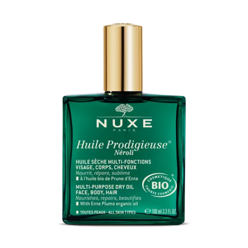 Nuxe Néroli čudesno suho ulje višenamjensko je organsko suho ulje, koje u jednom koraku njeguje lice, tijelo i kosu. Huile Prodigieuse Néroli njeguje i obnavlja kožu, te će dodatno razmaziti sva osjetila svojim aromatskim učinkom.