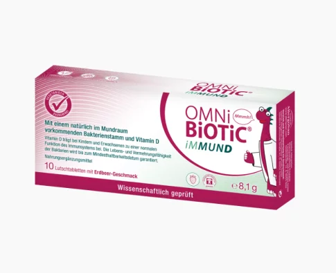 Omni Biotic iMMUND sadrži bakterijski soj Streptococcus salivarius K12, koji je prirodno prisutan u usnoj šupljini, a čija je djelotvornost dokazana brojnim znanstvenim studijama. Uz dodatak vitamina D doprinosi održavanju normalnih zubi i normalnoj funkciji imunosnog sustava djece i odraslih.