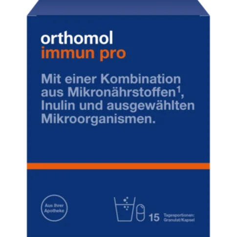 Orthomol Immun Pro je dodatak prehrani koji sadrži precizno usklađenu kombinaciju mikronutrijenata, inulina i odabranih mikroorganizama. Pogodan je kod liječenja poremećaja crijevne flore i imunološkog sustava povezanog sa crijevima, uvijek kada želudac treba pravu podršku.