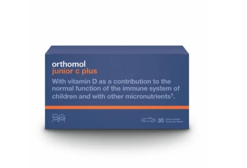 Orthomol Junior C Plus tablete za žvakanje dodatak su prehrani koji pomažu jačanju imuniteta te zdravom rastu i razvoju djece. Okus naranče i mandarine.