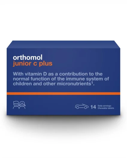 Orthomol Junior C Plus tablete za žvakanje dodatak su prehrani koji pomažu jačanju imuniteta te zdravom rastu i razvoju djece. Mix okusa naranče/mandarine i šumskog voća.