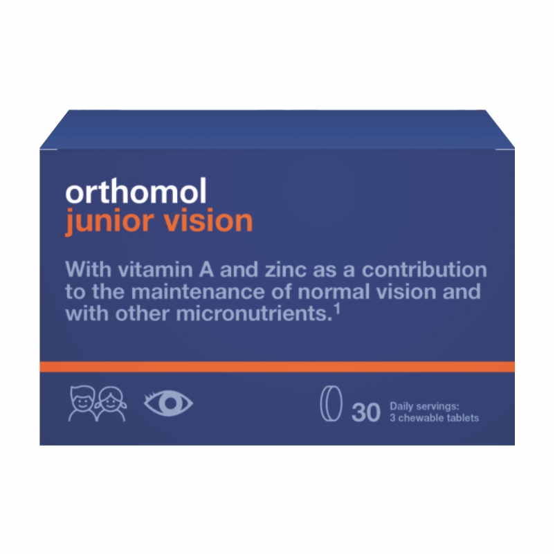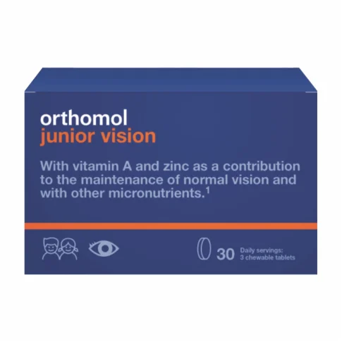 Orthomol JUNIOR Vision vitamini dijetetska su podrška za očuvanje vida kod djece. Sadrži omega-3 masne kiseline (DHA), vitamine i cink koji doprinose normalnom vidu i razvoju funkcije oka.