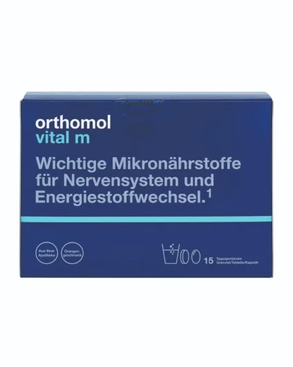 Orthomol Vital M mikronutrijenti moćna su kombinacija pažljivo doziranih i prilagođenih esencijalnih mikronutrijenata za smanjenje umora i iscrpljenosti kod muškaraca.