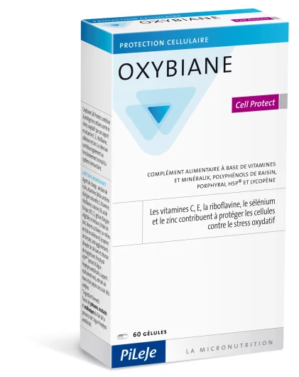 OXYBIANE CELL PROTECT kombinirajući vitamine i minerale s antioksidansima (vitamini E, B2, C te cink, selen, likopen, polifenoli iz grožđa) i ekstraktom Porphyral HSP-a ®, štiti stanice od slobodnih radikala i potiče normalno funkcioniranje imunološkog sustava.
