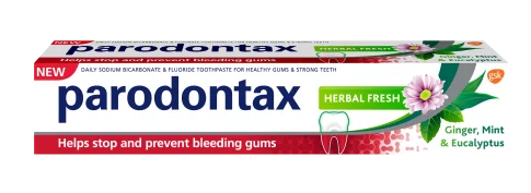 Parodontax zubna pasta Herbal fresh sadrži mineralnu sol i klinički dokazano pomaže pri zaustavljanju i sprječavanju krvarenja desni tako što uklanja nakupljeni bakterijski plak - glavni uzrok krvarenja desni, s ciljem postizanja zdravijih desni i jačih zuba.