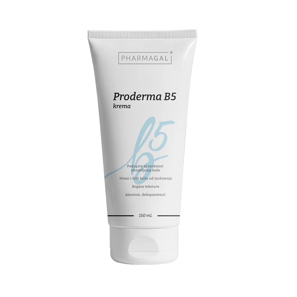 Pharmagal Proderma B5 krema za obnovu kože univerzalna je njega za obnovu kože i zaštitu njezine barijere. Bogata, hranjiva tekstura Proderme B5 intenzivno hidratizira i umiruje kožu.