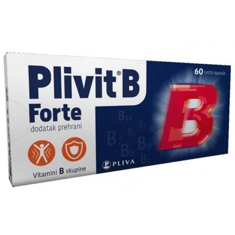 Plivit B Forte sadrži preko 100% preporučenog dnevnog unosa gotovo svih 8 vitamina B skupine. Doprinosi normalnom metabolizmu stvaranja energije i smanjenju umora i iscrpljenosti.Doprinosi normalnoj funkciji živčanog sustava.Vitamini B9, B6 i B12 doprinose normalnoj funkciji imunološkog sustava. Kod pojačanog umora i povećanih tjelesnih i mentalnih napora.