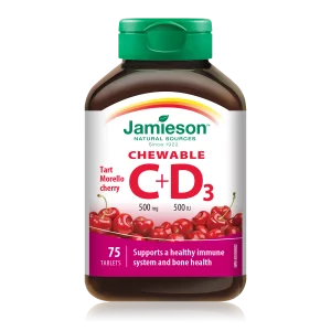 JAMIESON Vitamin C 500mg + D 500IU tablete za žvakanje s okusom trešnje, 75 komada