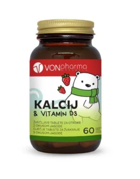 VONpharma KALCIJ&VITAMIN D3 dječje tablete za žvakanje s okusom jagode, 60 tableta