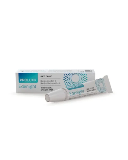 PROLUXX Edenight je sterilna, hipertonična mast za oko namijenjena za privremeno ublažavanje simptoma edema rožnice kao što su promjene vida i bol, čak i tijekom noći.