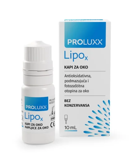 PROLUXX LipoX pomaže zaštiti površine i tkiva oka: od slobodnih radikala koji se stvaraju kod suhog oka, od posljedica visoke izloženosti uređajima koji emitiraju zračenje koje uzrokuje stres za oči (npr. plava svjetlost pri produženom korištenju računala, pametnih telefona, tableta), nepovoljnog osvjetljenja, te kod mehaničkog stresa (dijagnostički i kirurški postupci na oku, trauma oka) i/ili stresa povezanog s okolišem (klima uređaj, suhi ili zagađeni zrak).