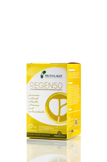 Nutrilago Regen 50 kapsule su dodatak prehrani koji doprinosi zdravlju prostate, urinarnog trakta te erektilnoj funkciji muškarca. Regen 50 sadrži optimalnu kombinaciju ekstrakta biljaka - ekstrakt ploda sabal palme, ekstrakt sjemenki bundeve, ekstrakt kore afričke šljive, vitamine - Vitamin C, E i B6 te minerale - cink i magnezij.