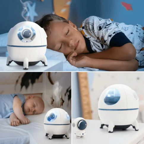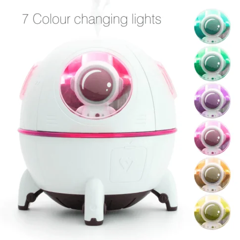 3-u-1 USB punjivi raspršivač eteričnih ulja, ovlaživač zraka i noćna svjetiljka – upravljajte s prekinutim snom, suhim zrakom i strahom od mraka s jednim kompaktnim, super slatkim uređajem u obliku svemirskog broda.