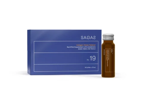 Sagas Rc 19 Collagen Stress Reliever pakiran je u praktične bočice i osmišljen za brzu i jednostavnu konzumaciju.