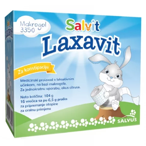 Salvit Laxavit medicinski je proizvod na bazi Makrogola 3350, koji se koristi u slučajevima kronične i akutne konstipacije i neredovitog pražnjenja crijeva kod djece.