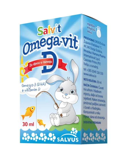 Salvit Omega-vit kapi sadrže dokosaheksaenoičnu kiselinu ( DHA ) iz ulja mikroalge Ulkenia Sp. i vitamin D3.