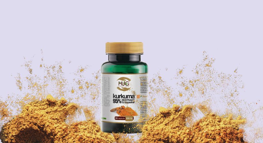Hug Your Life Kurkuma sadrži 95%-tni ekstrakt kurkumina s Bioperine te ekstrakt crnog papra.