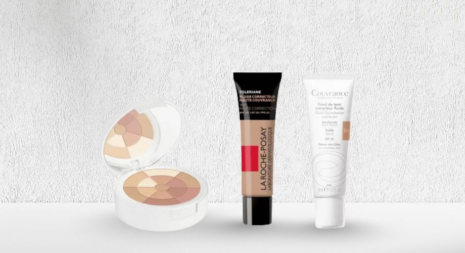 Puderi i korektori trebaju imati minimalan broj sastojaka, biti bez mirisa i po mogućnosti nekomedogeni. Idealno je birati dermatološki testirane proizvode s umirujućim sastojcima.